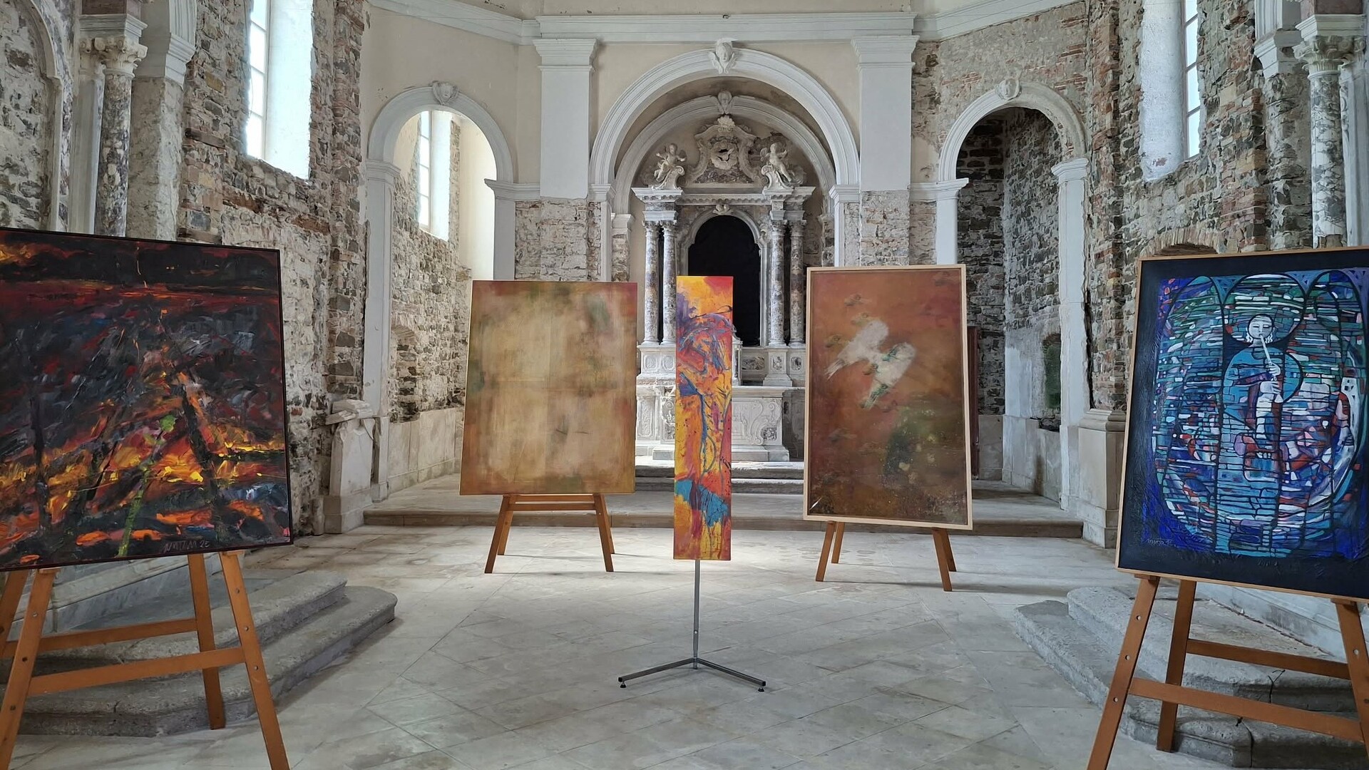 Foto: novinarka Ksenja Hočevar, ki je zasnovala razstavo Odsevi upanja skupaj z Bernardo Stenovec. Fotografija je nastala na razstavi po piranskih cerkvah.
